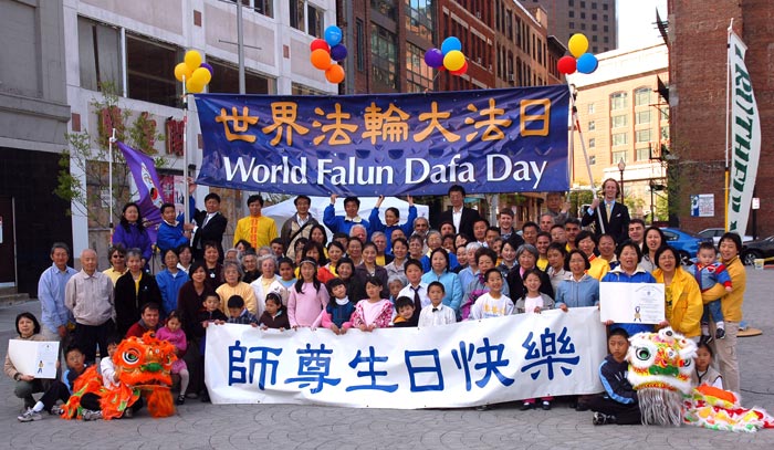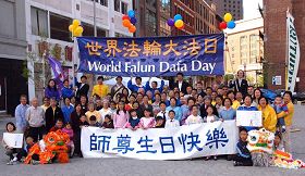 当日除了很多市民前来参加庆祝活动外,麻州众政要亦纷纷为「世界法轮大法日」发来祝贺及褒奖。其中包括美国国会众议员林奇褒奖李洪志先生特别国会表彰证书;美国国会众议员田尔尼祝贺法轮大法日并关注中国人权;麻州渥萨姆市市长麦卡锡褒奖法轮大法周以荣耀真善忍;麻州参众两议院分别褒奖世界法轮大法日,向李洪志先生洪传法轮大法十六年致以最衷心的祝贺。