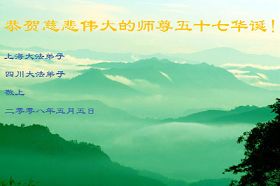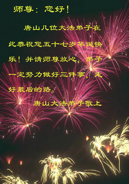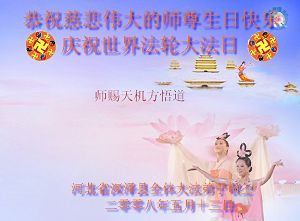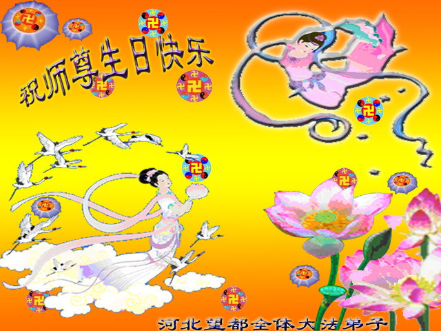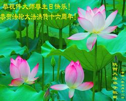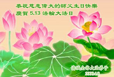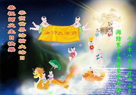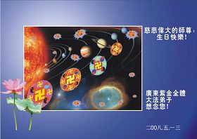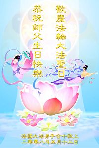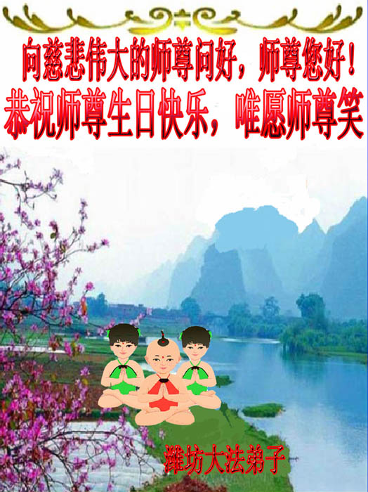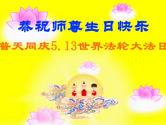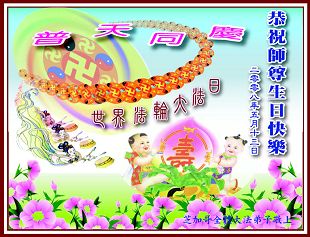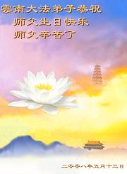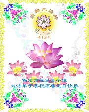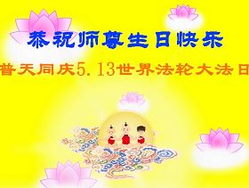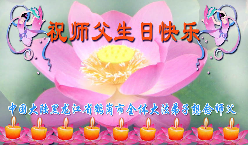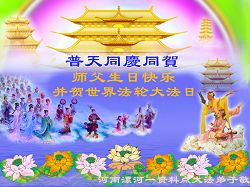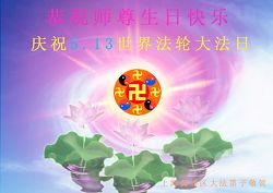 全体大法弟子向伟大的师父问好,恭祝师尊生日快乐!弟子十分想念师父,每个弟子都在努力做好三件事,兑现自己的史前誓愿!