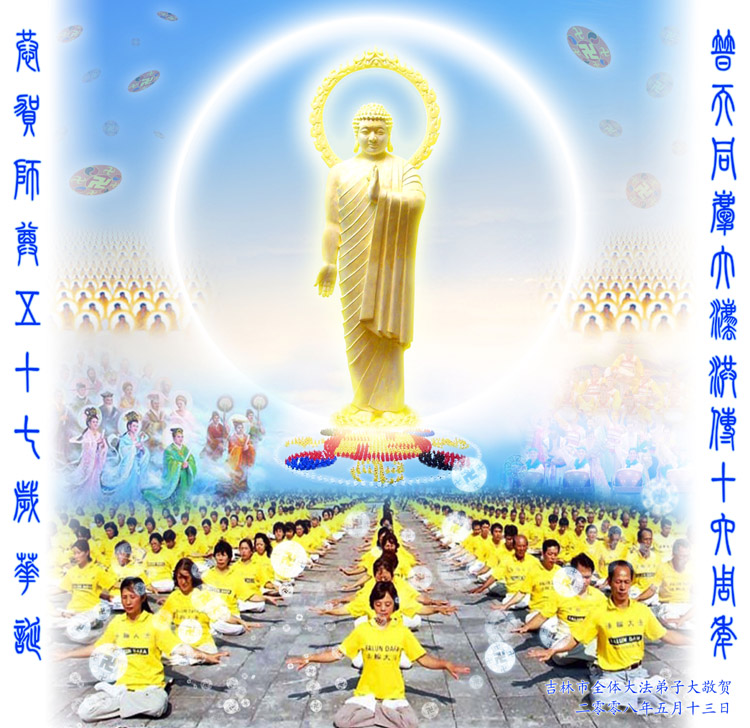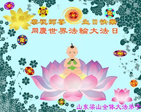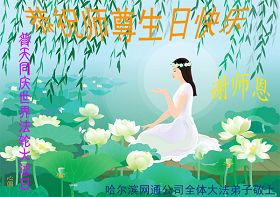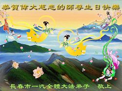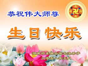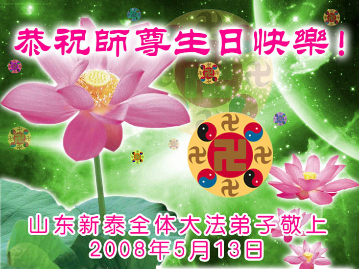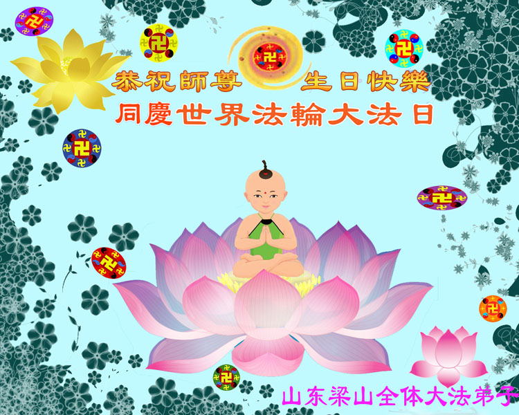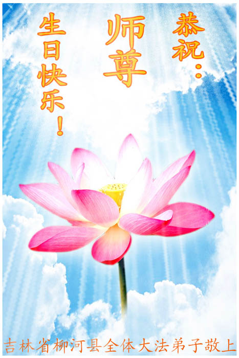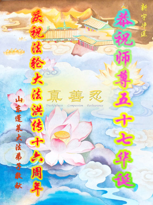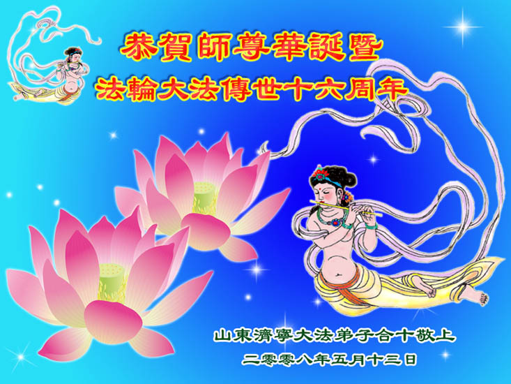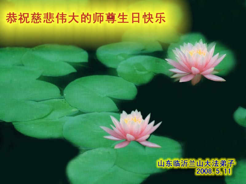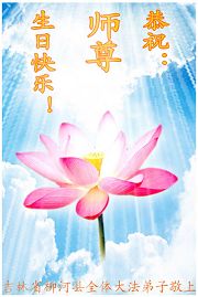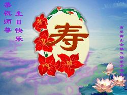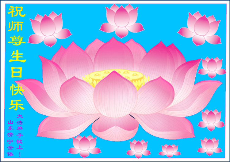 我们知道您为我们操尽了心,我们不知道用什么才能报答这如海的洪恩。师父,我们济南大法弟子将按照您的教诲走好生命的每一步,直到完全同化你交给我们的伟大佛法,成为您期望我们成为的那样的生命。用生命证悟这伟大的宇宙大法,用大法弟子的风范给宇宙带来荣耀。所以恩师,在您诞辰的日子,我们向您表示,我们会不断的在神的路上精進,使您放心。