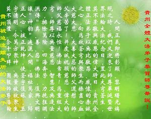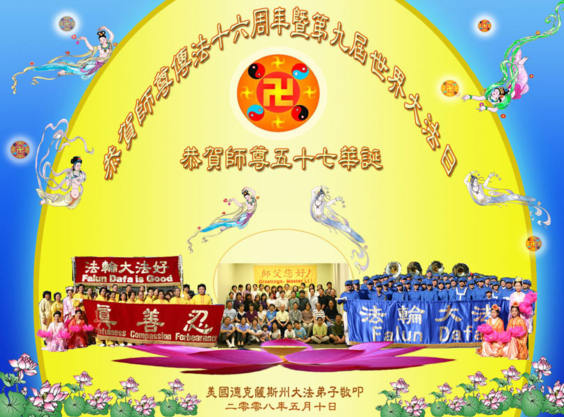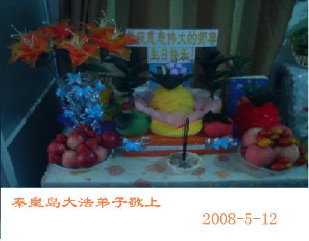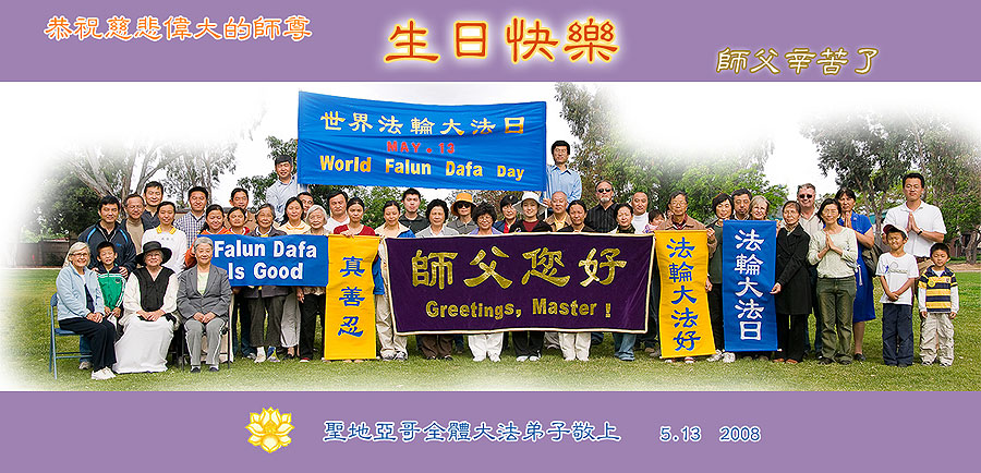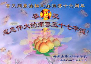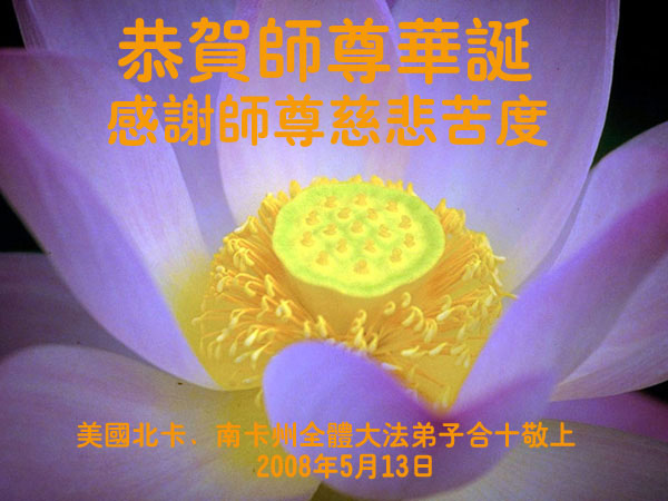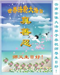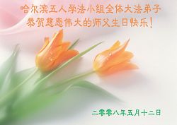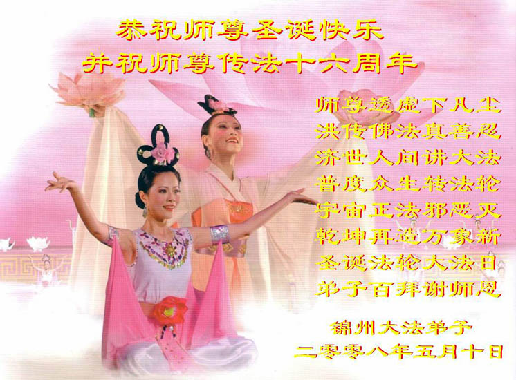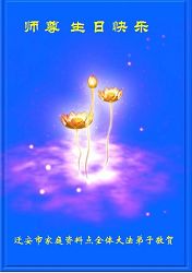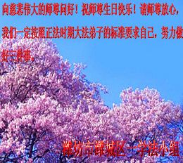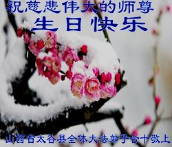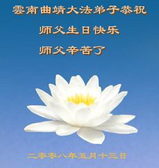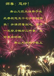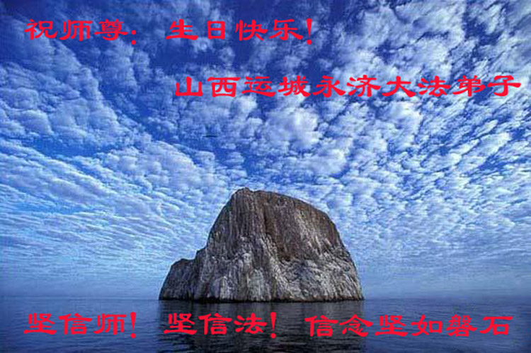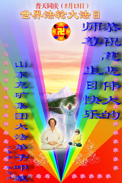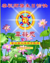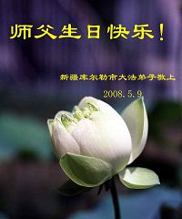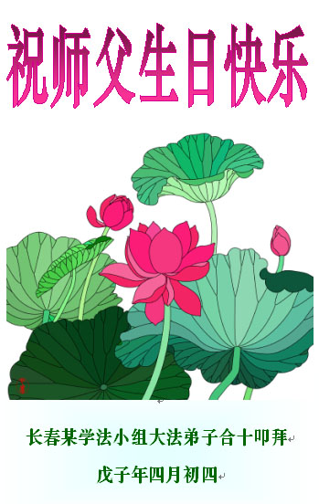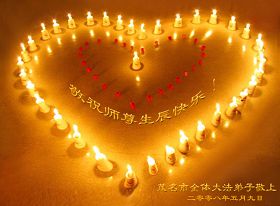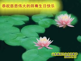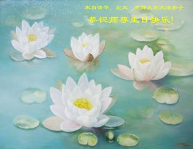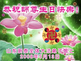 我们知道您为我们操尽了心,我们不知道用什么才能报答这如海的洪恩。师父,我们济南大法弟子将按照您的教诲走好生命的每一步,直到完全同化你交给我们的伟大佛法,成为您期望我们成为的那样的生命。用生命证悟这伟大的宇宙大法,用大法弟子的风范给宇宙带来荣耀。所以恩师,在您诞辰的日子,我们向您表示,我们会不断的在神的路上精進,使您放心。