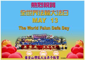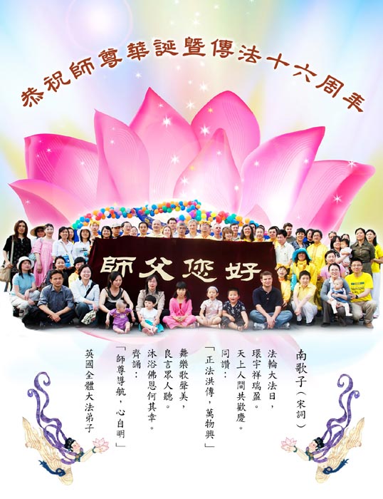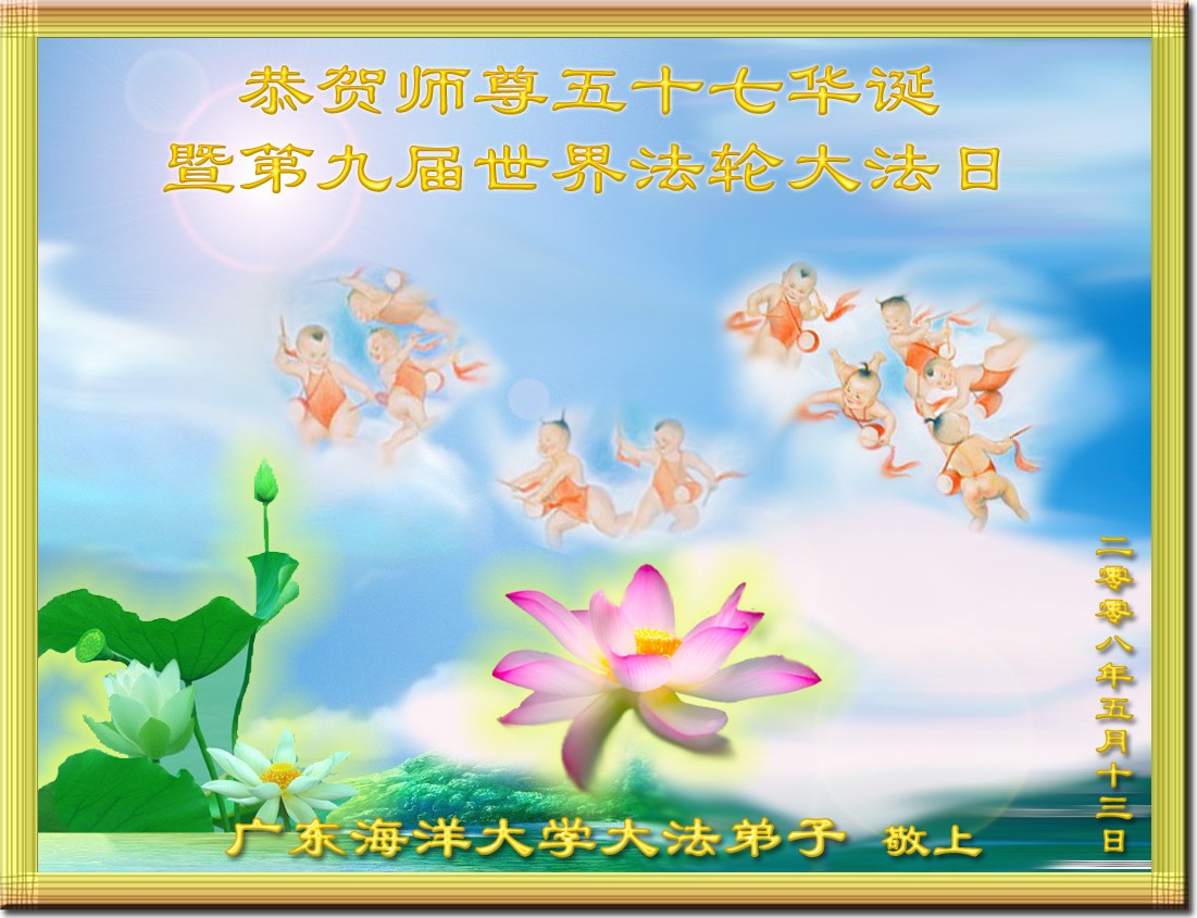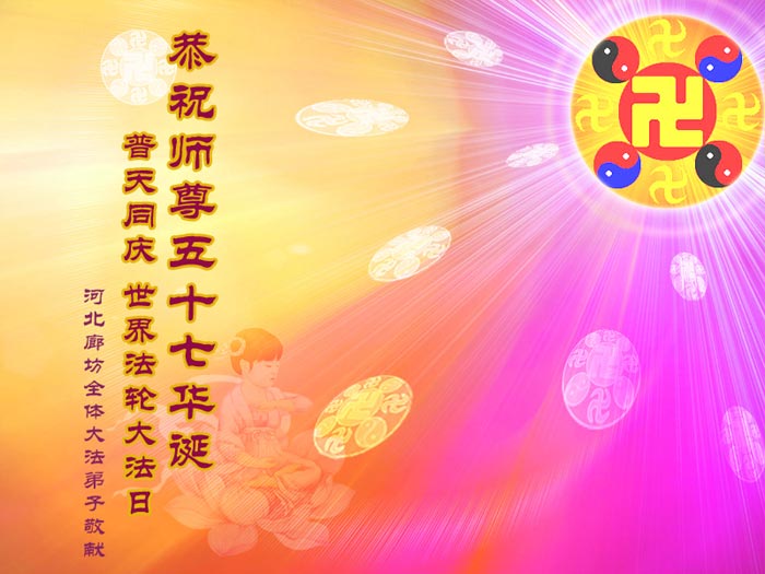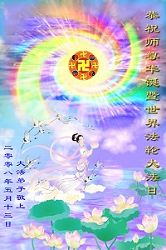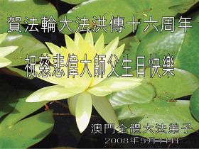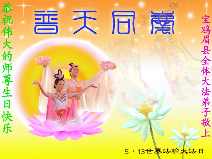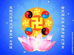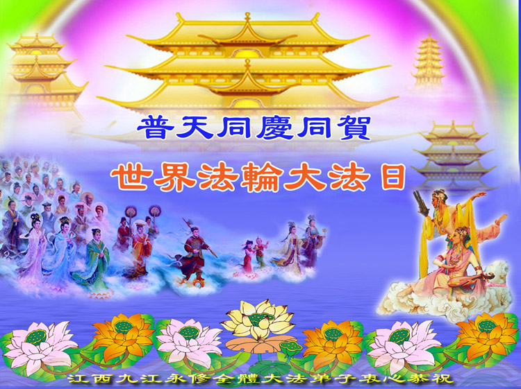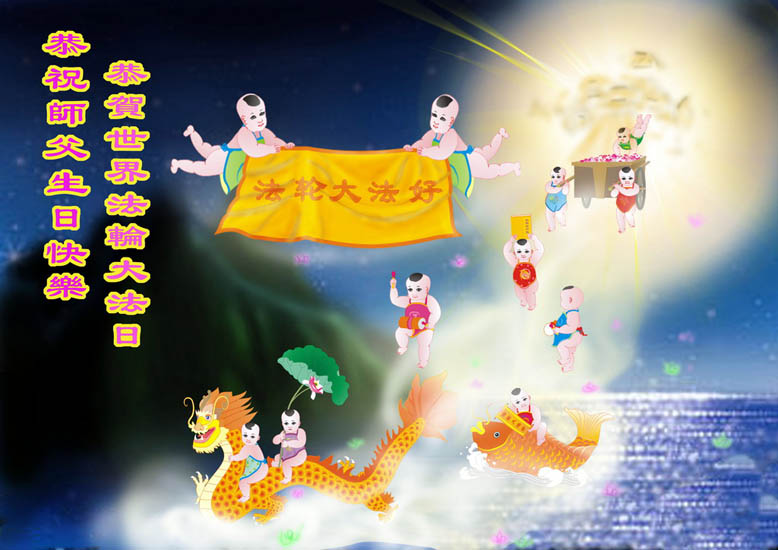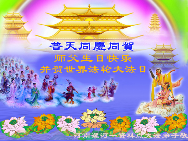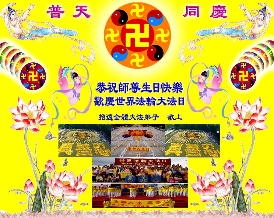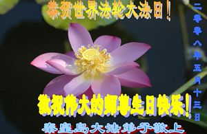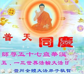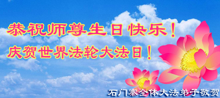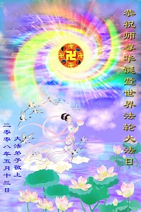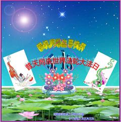 这一天,将永载宇宙的历史,这一天将永铭弟子心中。历史的将来,将见证弟子们兑现的史前的誓愿。弟子们敬贺世界法轮大法日,弟子们恭问师父快乐。