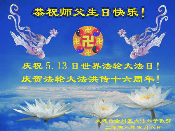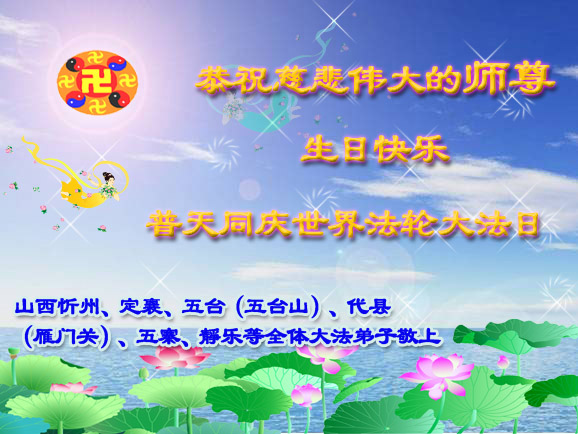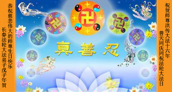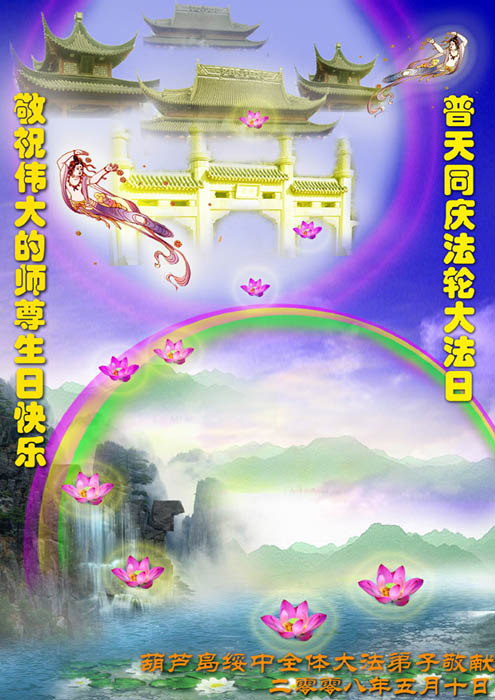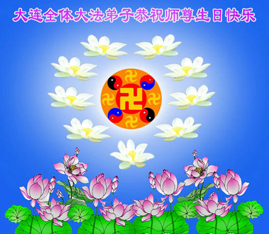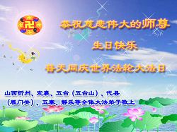 在慈悲伟大的师尊华诞暨世界法轮大法日到来之际,鞍山全体大法弟子恭祝慈悲伟大的师尊生日快乐!同庆、同祝、同贺世界法轮大法日!
