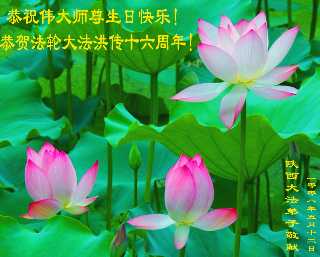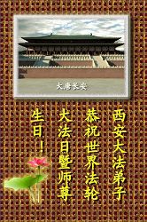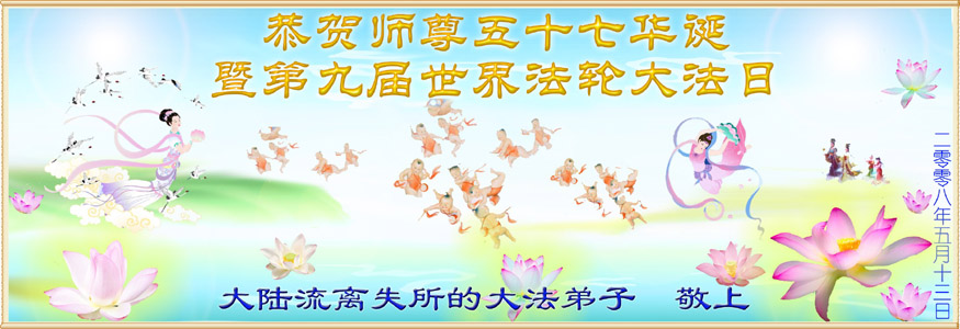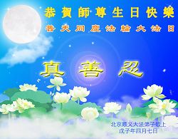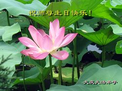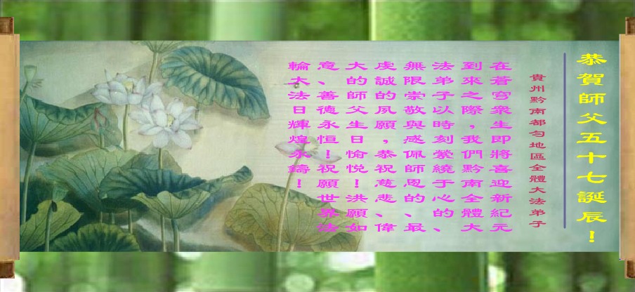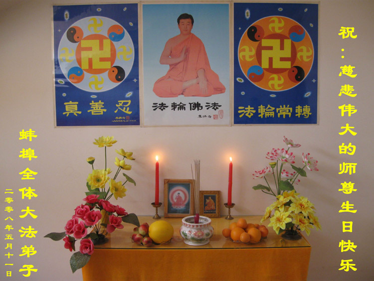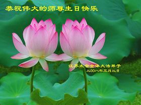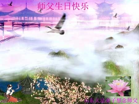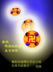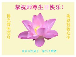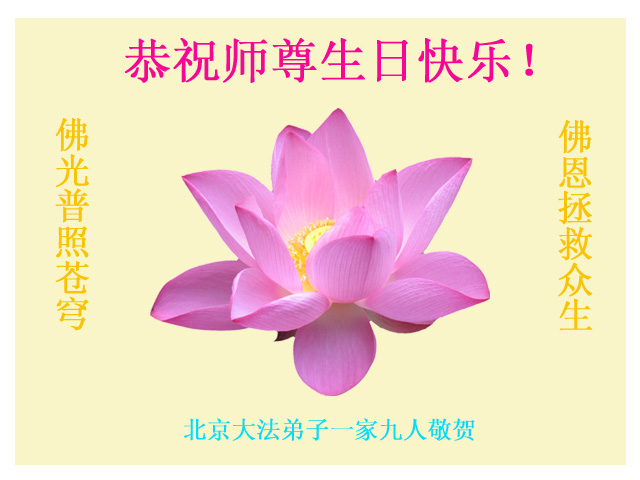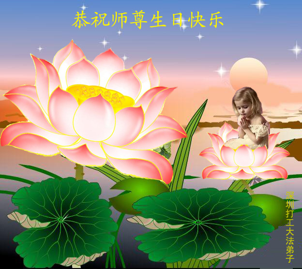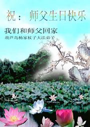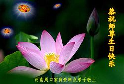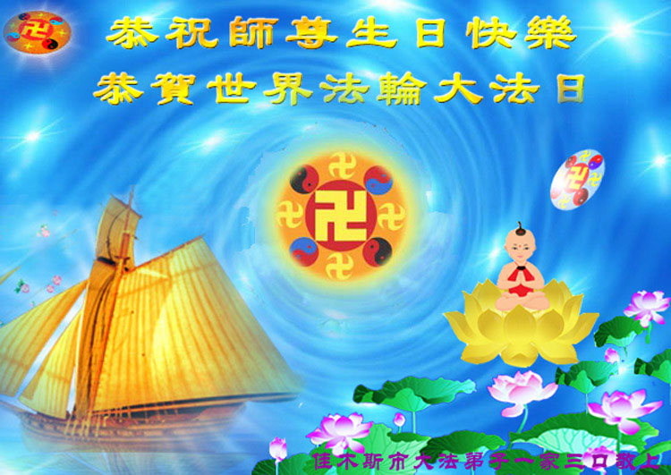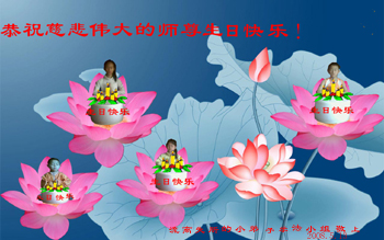 师尊弟子一家三口想您,在师尊生日和法轮大法日来临之时,弟子含泪感谢师尊救度之恩,我们一定会更加努力做好三件事,去掉所有的执著,让师尊多一份欣慰,少一份操劳。