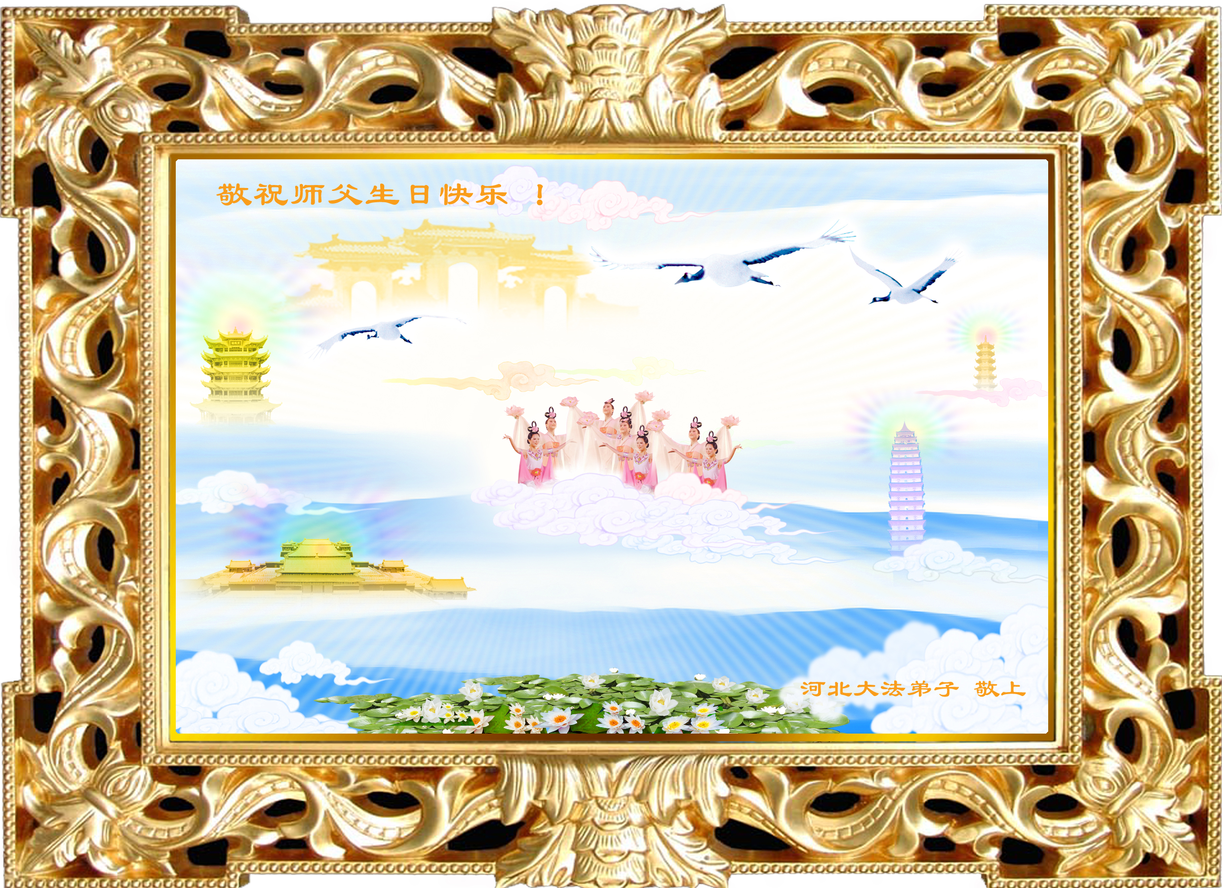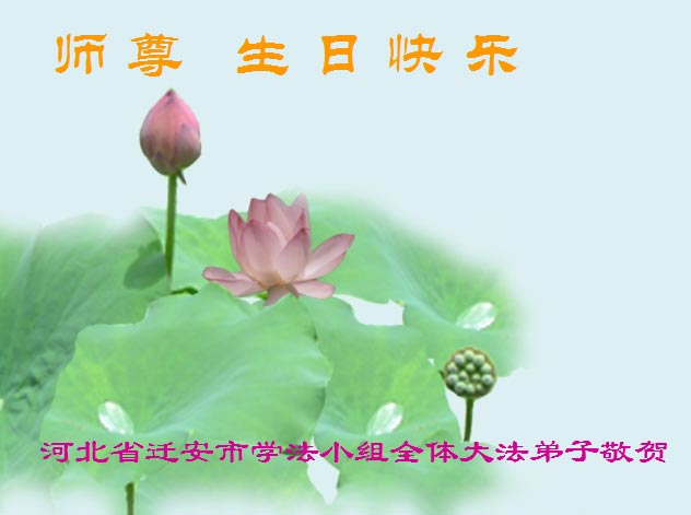 全体辛集市的大法弟子想念师尊,在这普天同庆的伟大的节日里,我们向师尊问好,恭贺我们伟大的师尊生日快乐!师尊对我们的救度之恩,我们无以言表,我们会遵照师尊的嘱托,做好正法中的三件事,除尽宇宙中的一切邪恶,救度众生!来兑现我们史前的洪誓大愿,圆满随师还!