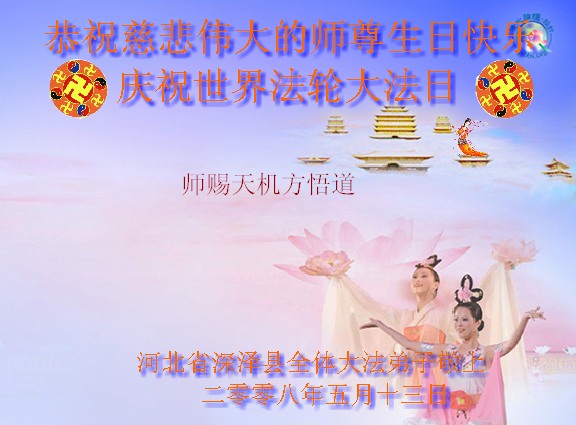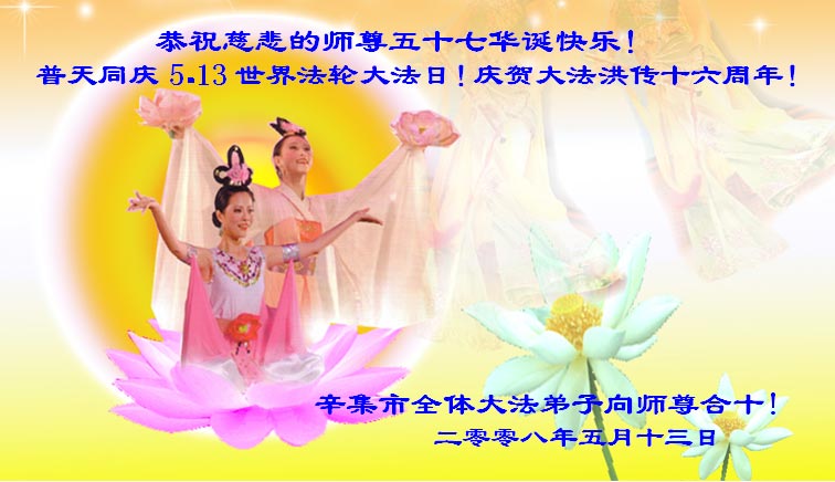 辛集市全体大法弟子叩拜师尊! 二零零八年五月九日