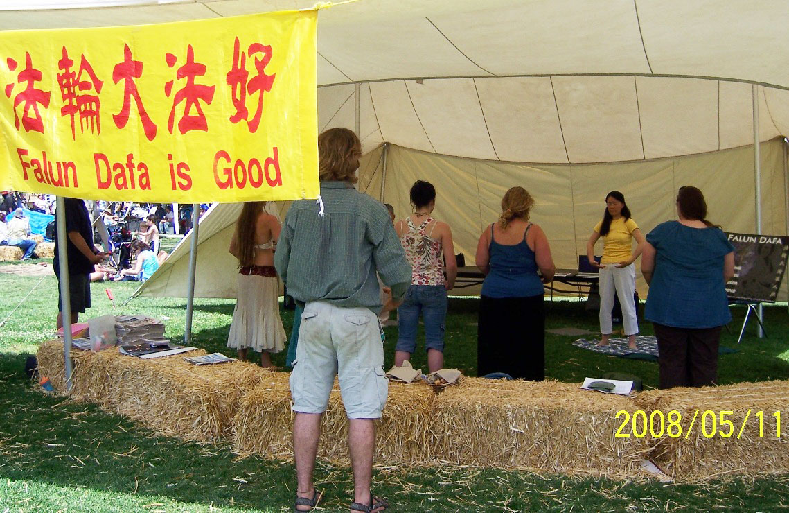 前后有近二十名参加者学完了完整的法轮功五套功法,其中不仅有年轻人,还有老人和孩子。他们在学完之后纷纷向学员表示感谢,满意而去。小伙子麦克更是反复的对学员来此介绍法轮大法表达钦佩和感激之情。还有人在学完功法后继续 与学员作深入的交谈,希望能了解到更多的讯息。学功者之一詹先生急不可待的想要向他更多的朋友推荐,并仔细地记下了学校里的炼功点。