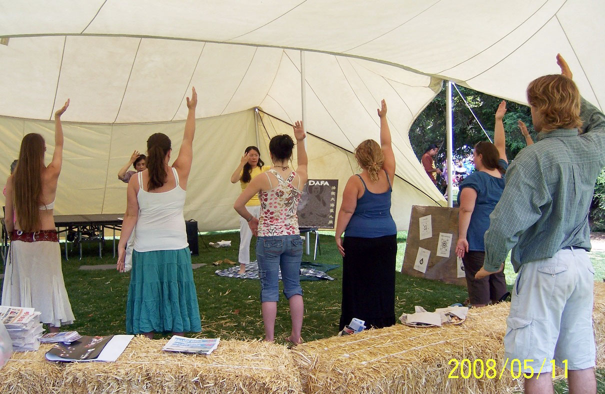 除教功之外,学员们还派发了许多有关法轮功的真相资料。很多人已经知道了法轮功,并对中共继续非法而残酷的迫害法轮功表示关注。“共产党从来都是这样迫害信仰!”来自戴维斯学校的阿西里说。