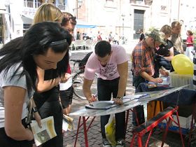 ![]() 法轮功学员在德国弗莱堡市中心举办活动庆祝世界法轮大法日 |