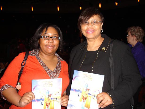 ![]() 密苏里州参议员考尔曼(Maida Coleman)和女儿在圣路易斯观看神韵晚会 |