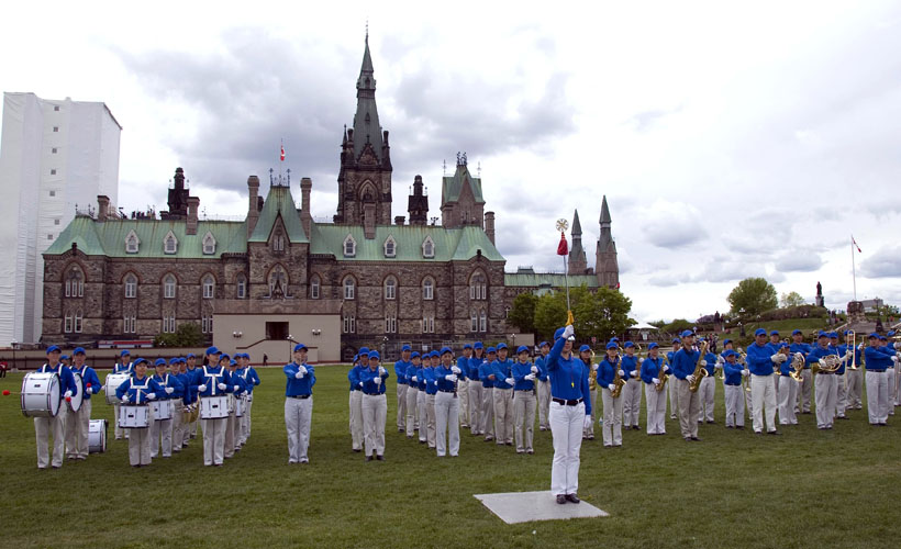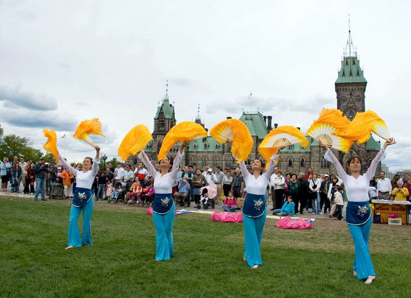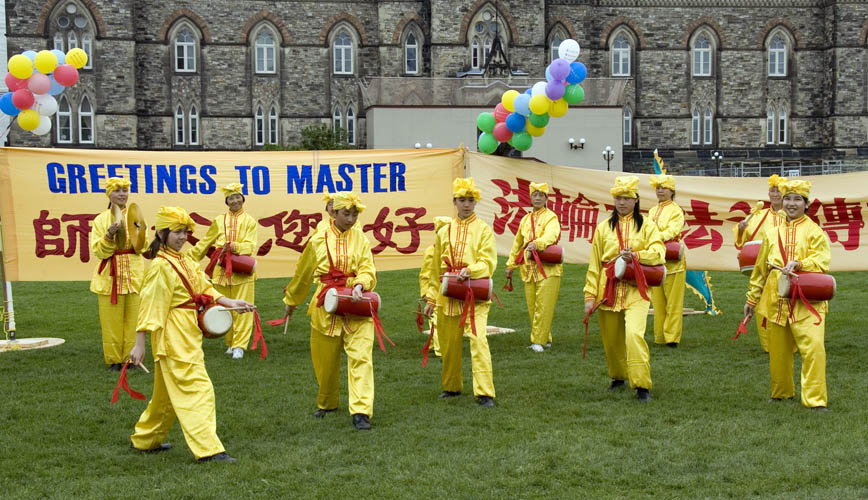 法轮功学员在加拿大国会山前举行“法轮大法洪传世界十六周年”庆祝活动