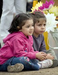 ![]() 被法轮功学员表演所吸引的小朋友 |