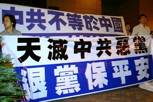 中共政法委书记周永康最近直接指挥、破坏海外声援中国民众退党集会和传递人权圣火的活动。周永康利用中共在海外的特务机构,由中共背后控制的华人侨团和学生学者联合会等组织,煽动仇恨,花钱收买地痞流氓肇事,在美国旧金山、洛杉矶、纽约、香港等地攻击参加声援中国民众退党集会的华人。尤其五月十七日、十八日、二十日几天之内,全球退党服务中心纽约分部在法拉盛的退党服务点和声援退党的活动遭到中领馆组织的大规模骚扰和围攻。