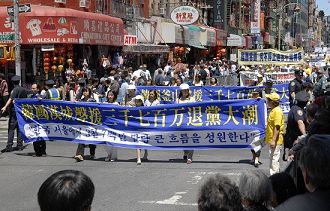 二零零八年五月二十四日中午,约二千名来自不同国家地区、不同肤色种族、不同职业阶层的法轮功学员齐聚纽约曼哈顿唐人街,向民众展示法轮大法的美好及揭露中共迫害法轮功的种种恶行,并声援三千七百万民众退出中共邪党组织,宣告中共即将解体的讯息。