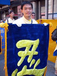 二零零八年五月二十五日中午十二点,两千余名法轮功学员及社会正义人士在曼哈顿唐人街举行盛大游行,展示法轮大法洪传世界八十几个国家与地区的美好,并以巨幅标语谴责中共利用四川地震这样的国难加剧迫害法轮功。