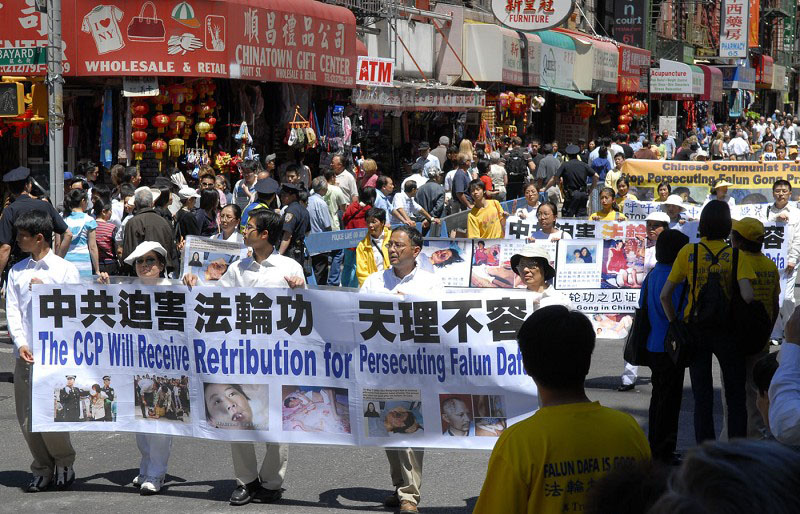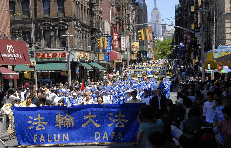 ![]() 二零零八年五月二十五日中午,两千余名法轮功学员在曼哈顿华埠举行了大游行 |