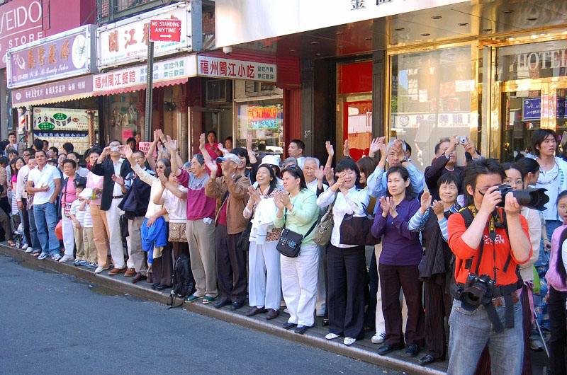 ![]() 浩浩荡荡的游行队伍行进在曼哈顿唐人街 |