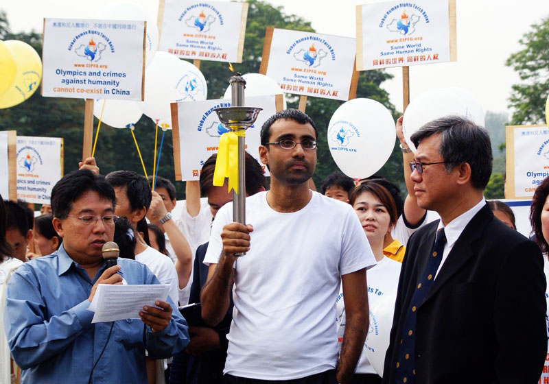 ![]() 法轮功受迫害真相联合调查团在马来西亚的代表苏仁德(N. Surendran)接过圣火 |