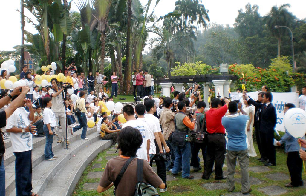 最后他认为:「最重要我们不是反对什么政府,我们是站在人权的角度以事论事,希望大家能支持我们把人权圣火传递到全马来西亚,传递到全世界。」
