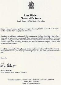 加拿大卑诗省政要祝贺神韵演出成功(图)