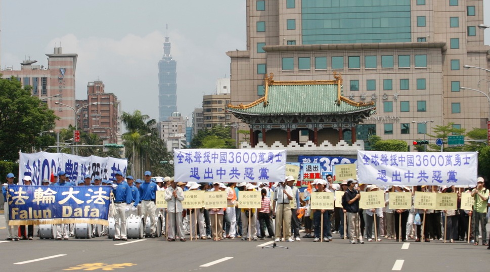 ![]() 全球退党服务中心与台湾文化基金会等团体,二零零八年五月三日下午在台北市凯达格兰大道广场举行集会游行,声援三千六百多万中国人退出中共党、团、队组织。 |