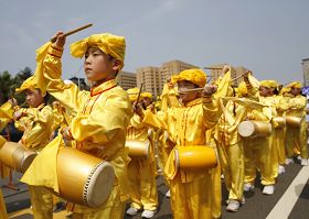 ![]() 法轮功小弟子的腰鼓队也一同庆祝三千六百万中国勇士退出中共邪党相关组织 |