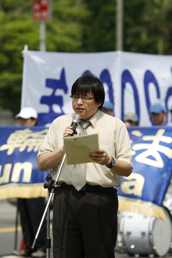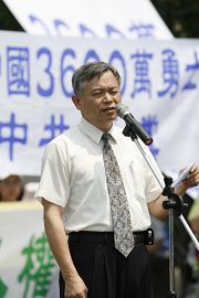 ![]() 台湾大学政治系明居正教授应邀宣读大会声明,同时疾呼不要对人性和天理存疑,快为自己和下一代做出正确的选择。 |