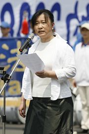 童文薰律师表示今天(五月三日)是新闻自由日,能在这里举办这个声援活动别具意义,她强调没有中国共产党才有新中国,才有真自由;因此她呼吁大家都来加入劝善退出中共党团组织的行列。