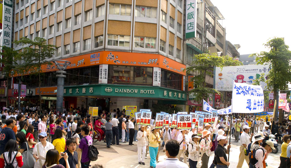 ![]() 声援三千六百万勇士退出中共邪党的游行活动经过热闹的商圈,人潮涌动 |