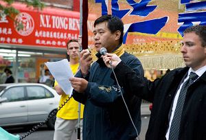 集会主持人:呼吁所有华人不要被中共利用 共同制止迫害