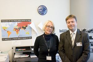 ![]() 韩娜•福坦-库比茨卡女士与国际人权协会波兰代表在欧洲议会合影 |