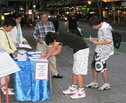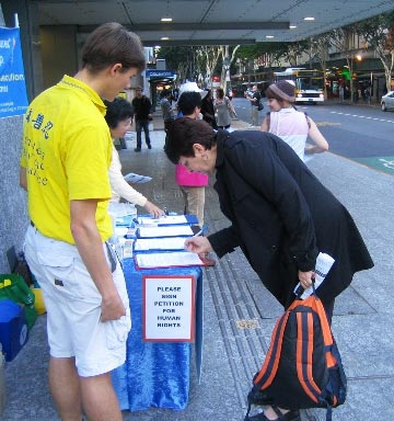 此外,不少中国留学生也主动前来了解法轮功真相,并索取《九评共产党》、真相光盘及资料等。一位女学生表示,能在澳洲遇见法轮功学员真是幸运,她表示会好好了解真相,并希望阅读《转法轮》一书。