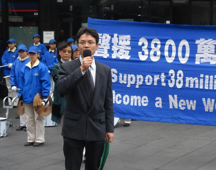 ![]() 澳洲纽省法轮大法协会发言人约翰戴乐在集会上发言 |
