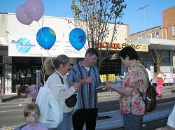 游行结束后,部份学员在主席台对面的摊位上炼功,发真相资料。一些市民纷纷签名,要求中共立即停止迫害、释放法轮功学员。