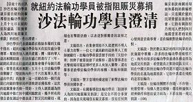 马来西亚沙巴州《华侨日报》日前为法轮功学员刊登一份声明,澄清法轮功学员在纽约法拉盛“阻挠华人为四川赈灾捐款”的不实指控。