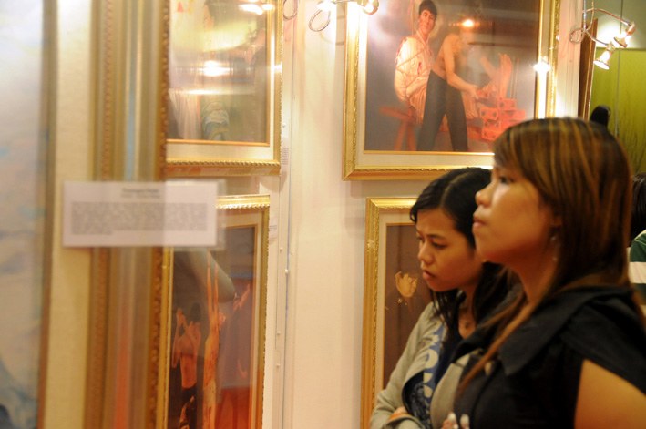 该百货公司的购物人群非常可观。人们纷纷在画展前驻足。一位来自日惹的男士说他刚到达雅加达,在等待他妹妹到来期间顺便逛逛街,正好看到这场展览。他表示说这些画都非常美,而他最喜爱的则是董希强所创作的“圣任”。看到法轮功学员的这些艺术作品,他说这个功法必定含有不寻常的境界。