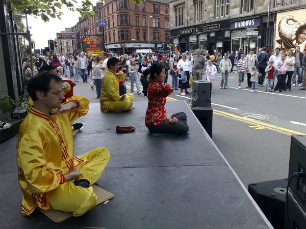 法轮功学员在格拉斯哥艺术节上展示功法