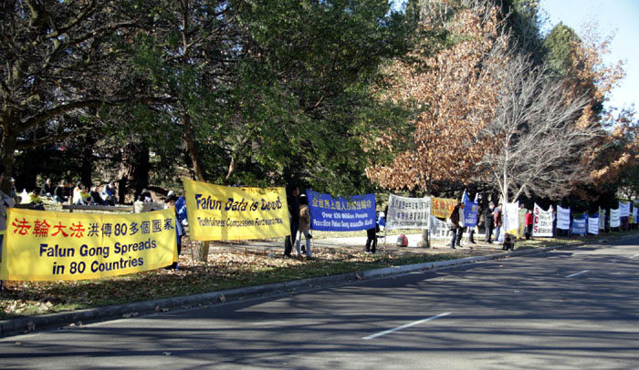 ![]() 法轮功学员在堪培拉中使馆前抗议中共迫害和法拉盛暴力事件 |