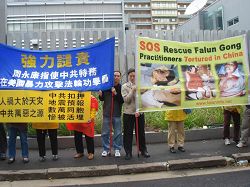 二零零八年六月五日,悉尼法轮功学员们在中领馆前集会,抗议和谴责中共在海外华人中煽动仇恨、近日在纽约法拉盛上演文革式的围攻法轮功学员的暴行,并声援纽约法拉盛的法轮功学员及退党服务中心义工们的正义之举。