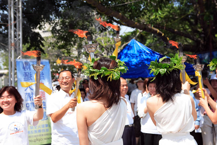 ![]() 立法委员江义雄点燃圣火台 |