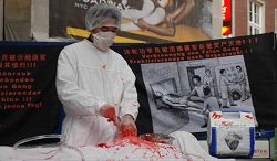 ![]() 模拟中共活体摘取法轮功学员器官 |
