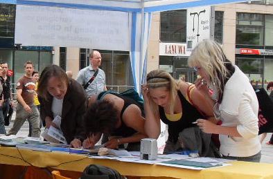 ![]() 杜塞尔多市民签名制止中共迫害法轮功 |