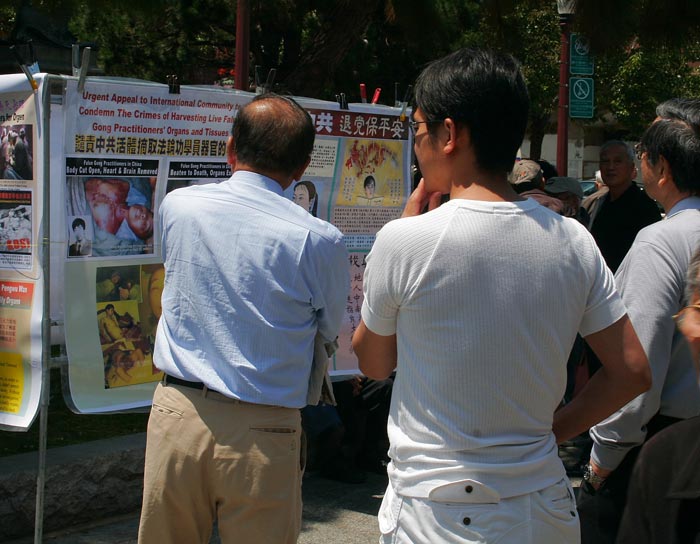 在花园角并设有真相图片展,一张张法轮功学员遭受中共酷刑折磨、伤痕累累的照片,令观者震惊。Joost Van Buul和他的四位朋友一起从欧洲来旧金山度假,他说,这些图片非常明显,事实就摆在眼前,这种迫害当然要结束!