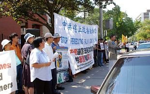 二零零八年七月十六日,多伦多法轮大法学会在加拿大多伦多中领馆前举行新闻发布会,呼吁加拿大政府继续公开谴责中共迫害法轮功,并呼吁在中国举办奥运会前,彻底制止中共对法轮功的迫害。