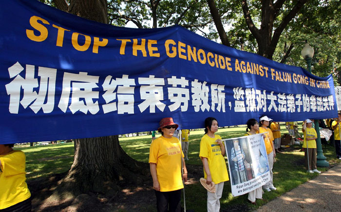 ![]() 呼吁制止中共迫害法轮功的大型横幅 |