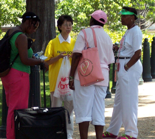![]() 学员们向路人讲述中共迫害法轮功的真相 |