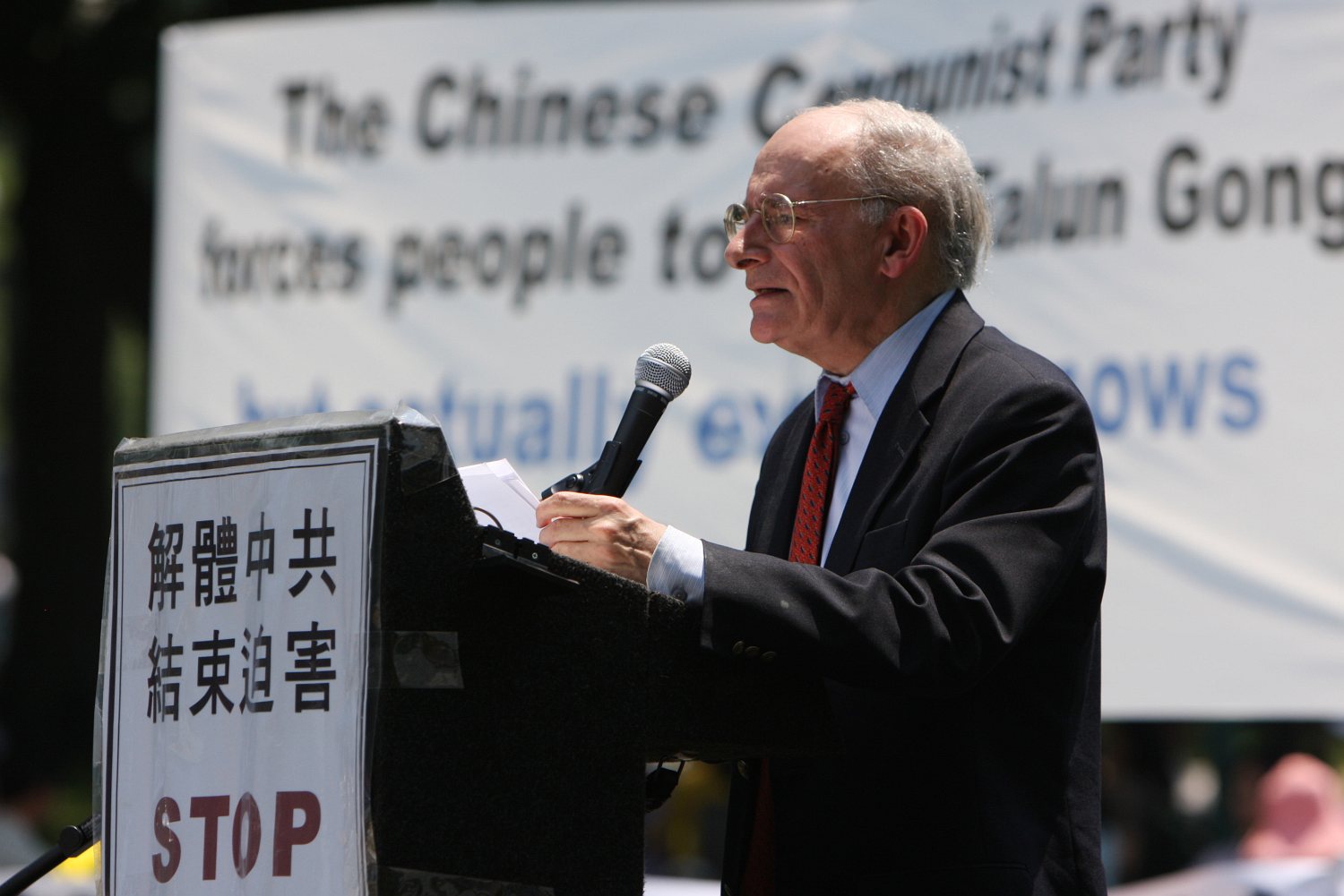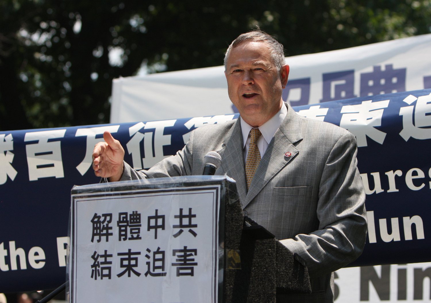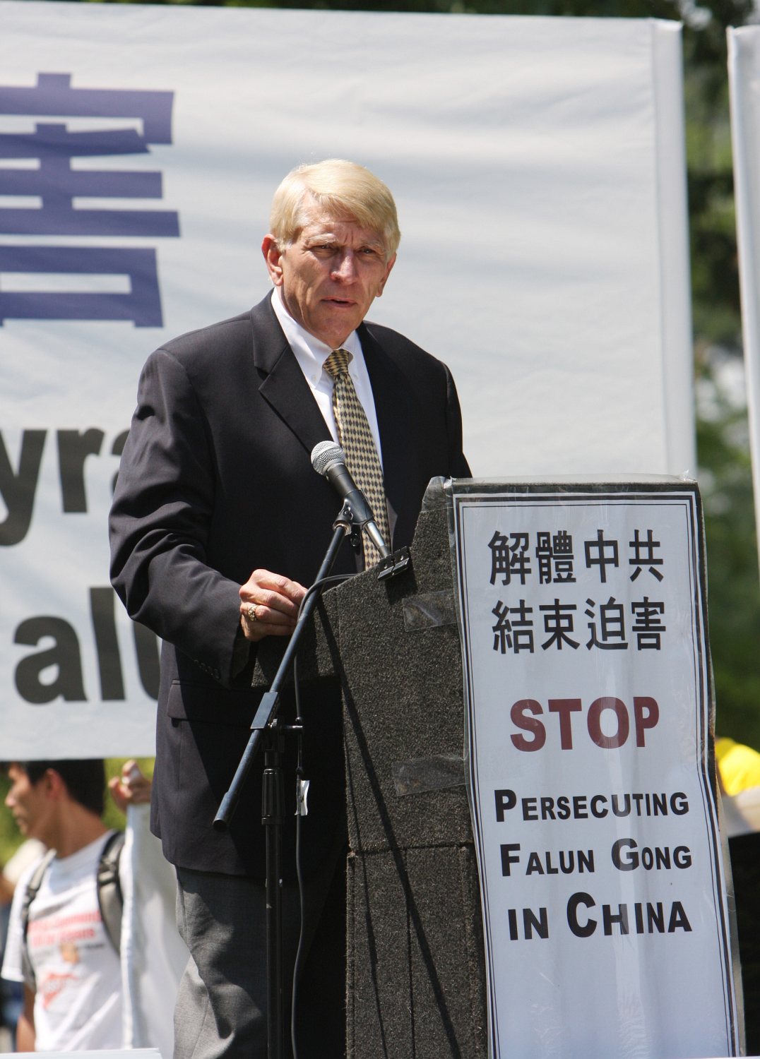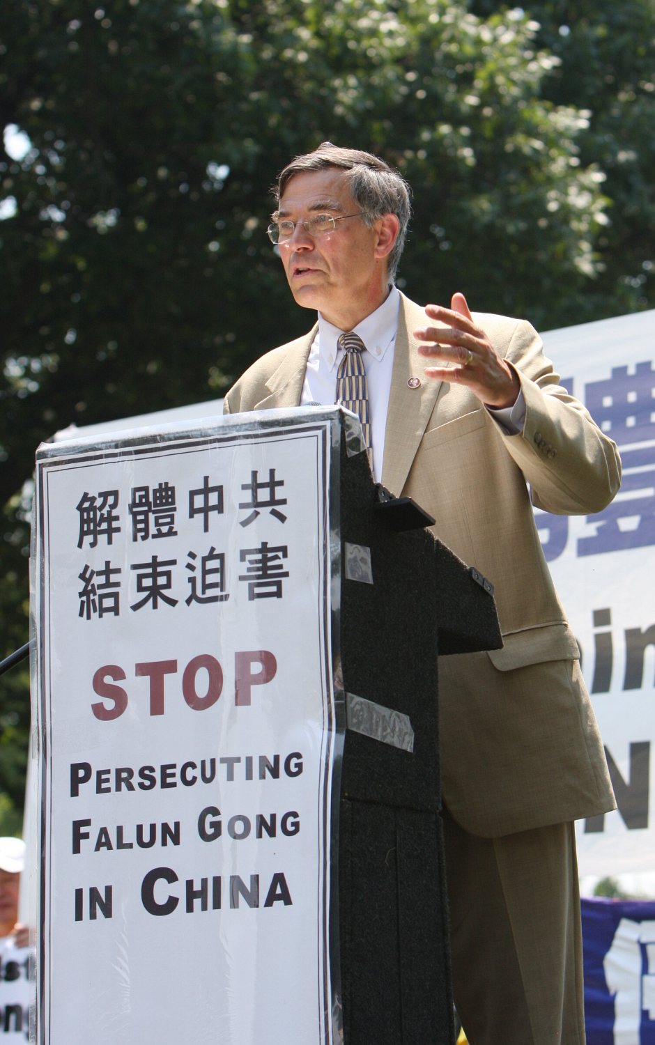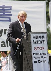美国众议员Rush Holt在集会发言上说,每年这个时候,法轮功学员在酷热天气下集会,这本身就说明了问题。“我把他们身处阳光之下视作一种象征:就是曝光迫害、曝光(中共)抹杀人权。”