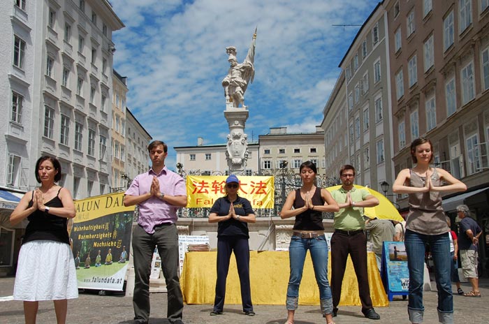 萨尔茨堡人、大学教授别格(Berg)女士,几年前在纽约的曼哈顿了解到法轮功学员被中共迫害的情况。她对笔者表示,自己对这场迫害非常的愤慨。她曾经在中国和前苏联的大学工作过,非常清楚在共产党国家的残暴统治下,没有人权。她表示,当时印度的甘地,就是用和平的力量战胜了强权统治。她说:“我相信,总有一天你们的和平,还有这个善的力量,定能战胜邪恶。”临走时,她专门要了《九评共产党》这本揭露中共邪恶本质的书。