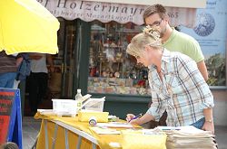 一位来维也纳旅游的瑞士游客说,她五年前就在瑞士的一次法轮功活动中签名,呼吁停止迫害,但是没想到已经五年过去了,迫害还在持续。她表示这次还要签名,并对学员说:“我会永远的支持你们!”