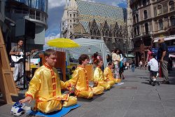 奥地利西人学员乌苏拉,是在一九九八年五月十三日得到《转法轮》这本书的,当时中国少林寺和尚来奥地利演出时,她从他们手中买的《转法轮》这本书,并随之开始修炼。当时中国政府在国外大力宣传法轮功,因为他的强身健体的功效,和让人们重建道德,以“真善忍”为做人准则。但是忽然在一九九九年的七月二十日后,她在电视报道中看到了中共开始大规模的迫害法轮功,并在全世界造谣诬蔑法轮功。乌苏拉就是从那个时候开始,一直在向当地的政府和民众、媒体,讲述法轮功被中共迫害的真实情况。她并表示,她会和世界上其他国家的法轮功学员一样,要把真相一直讲下去,直到迫害结束。