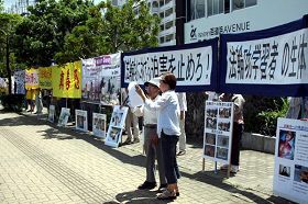 ![]() 福冈中领馆前,抗议中共对法轮功的迫害。 |